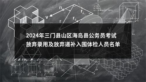 【2024年三门县山区海岛县公务员考试放弃录用及放弃递补入围体检人员名单】相关岗位: