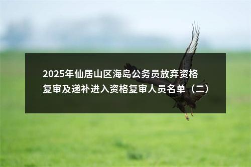 声明:专注 2025年仙居山区海岛公务员放弃资格复审及递补进入资格复审人员名单(二) 相关岗位分析;专业指导面试技巧;保障就业成功概率。