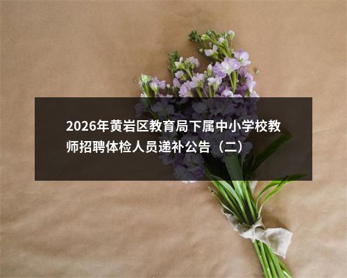声明:专注 2026年黄岩区教育局下属中小学校教师招聘体检人员递补公告(二) 相关岗位分析;专业指导面试技巧;保障就业成功概率。