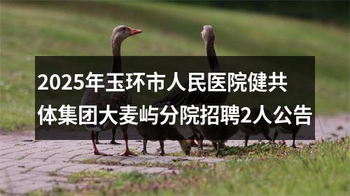 【2025年玉环市人民医院健共体集团大麦屿分院招聘2人公告】相关岗位: