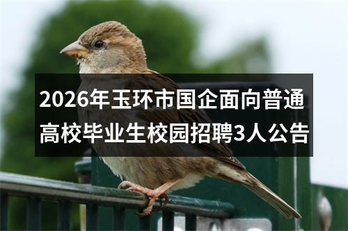 【2026年玉环市国企面向普通高校毕业生校园招聘3人公告】相关岗位: