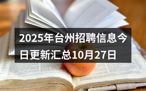 【2025年台州招聘信息今日更新汇总10月27日】相关岗位: