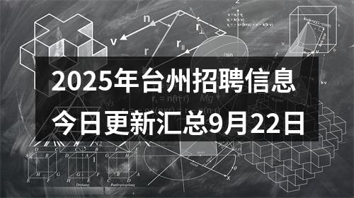 【2025年台州招聘信息今日更新汇总9月22日】相关岗位: