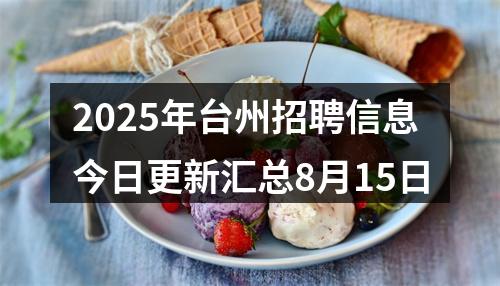 【2025年台州招聘信息今日更新汇总8月15日】相关岗位: