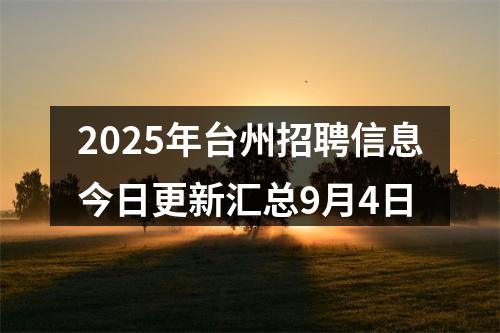 【2025年台州招聘信息今日更新汇总9月4日】相关岗位: