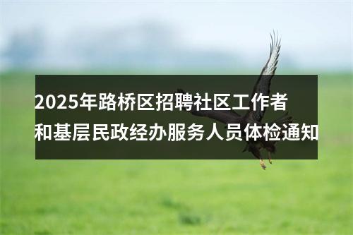 原标题:2025年台州市路桥区公开招聘专职社区工作者和基层民政经办服务人员领取 体检通知书公告