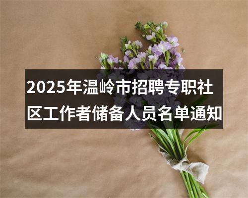 原标题:关于公布2025年温岭市公开招聘专职社区工作者储备人员名单的通知